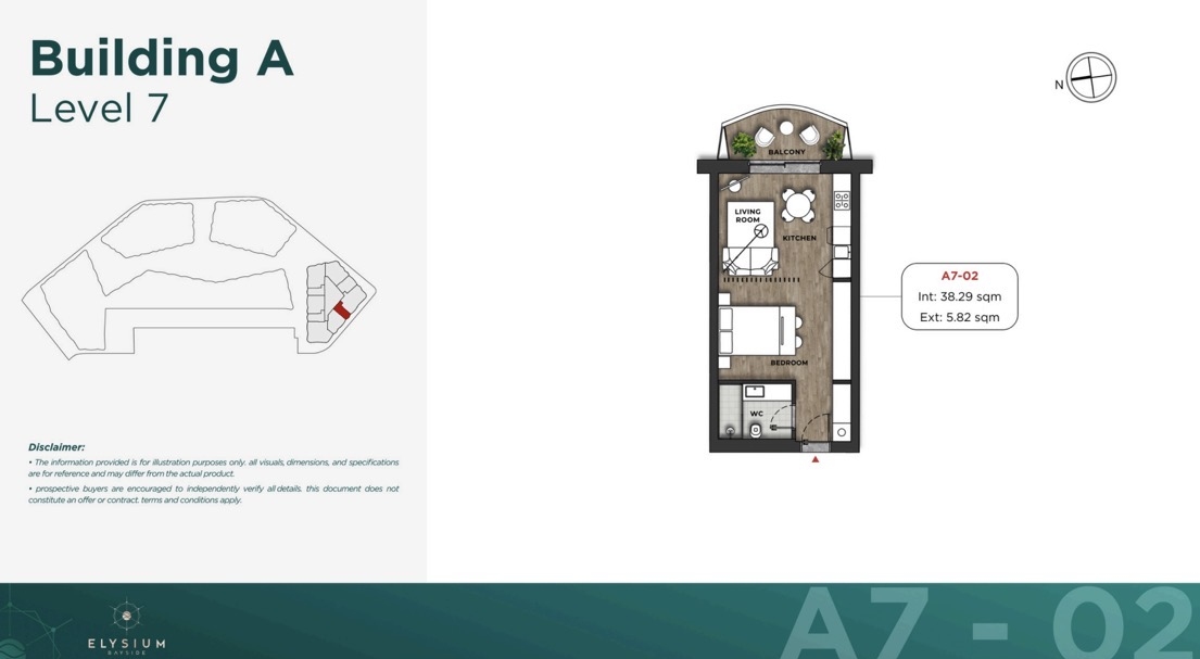 Studio located on the 7th floor of block A. Faces One Bayside.